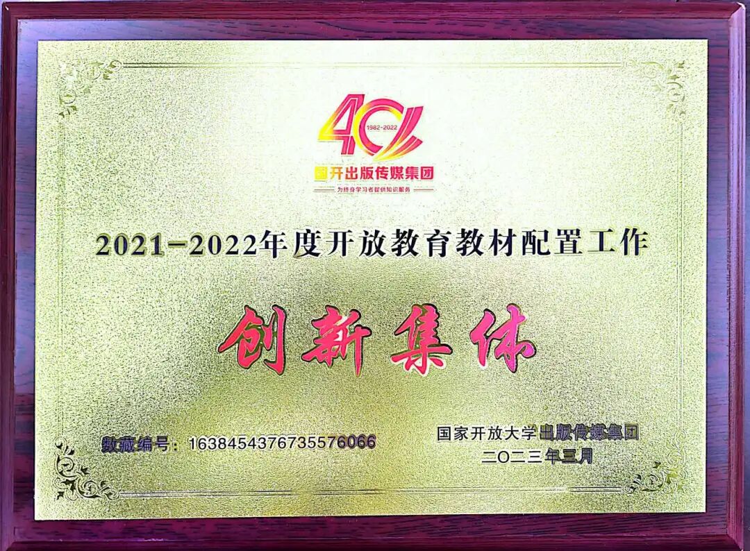 我校连续两届荣获国家开放大学教材配置工作优秀集体奖
