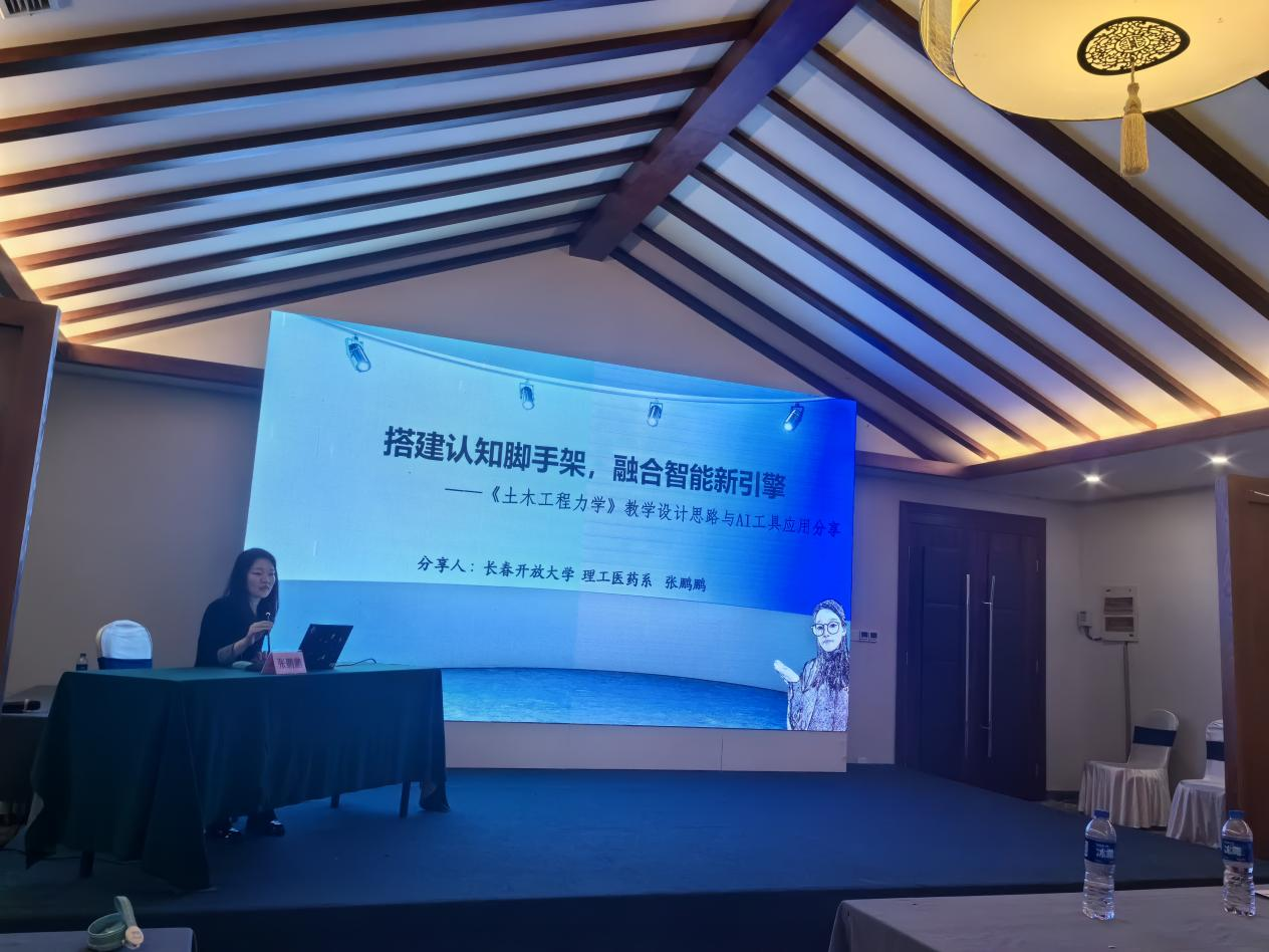 张鹏鹏老师以《搭建认知脚手架,融合智能新引擎——〈土木工程力学〉教学设计思路与AI工具应用分享》为题,从课程教学设计的核心逻辑出发,系统阐述了AI技术与学科教学的深度融合路径,内容兼具理论高度与实践指导性,获得了现场专家和同行们的一致好评。