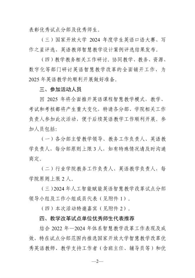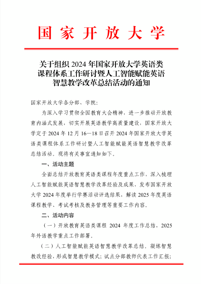 << 上一篇:关于举办2025年国家开放大学公共英语课程考试考核暨学士学位英语考试研讨活动的通知