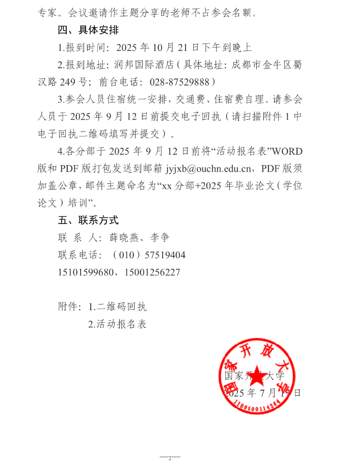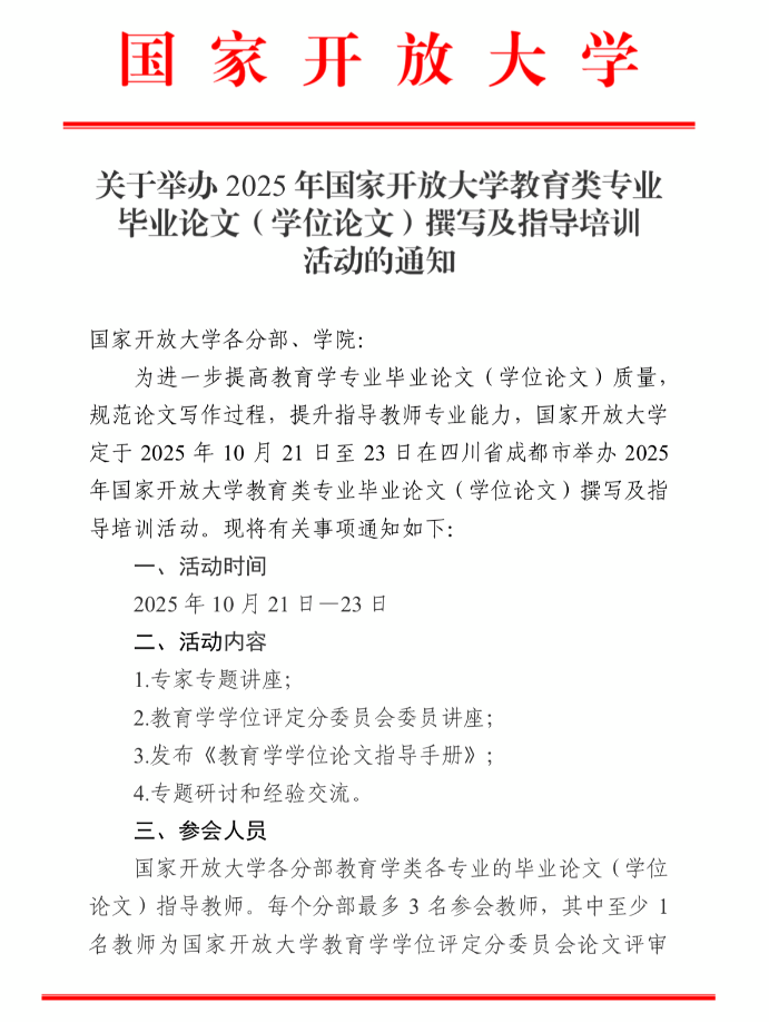 << 上一篇:关于举办2025年国家开放大学教育类专业教学研究中心组研讨会活动的通知