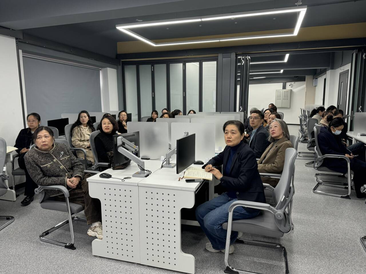 说课展示完毕后,会议随即进入评课研讨环节。在座各位教师围绕刘蕾老师的说课设计,从不同角度展开了深入细致的点评,并提出了宝贵的建设性意见。王爽爽处长首先对主讲教师的课程熟悉度与现场表达能力给予了高度肯定,并一针见血地指出,“说课”的核心在于阐释教学思路与设计依据,而非模拟课堂教学,必须严格遵循说课的规范形式进行梳理与呈现。随后,曾荣获说课大赛一等奖的闫鹏老师分享了宝贵经验,她建议进一步优化PPT的可视化设计,并适时引入短视频或AI技术等动态元素,以增强展示的吸引力与创新性。刘颖教授则从教师风范的角度补充了重要意见,她细致地提出,在正式的说课场合中,教师需注重整体的职业形象管理,包括端庄的仪态、整洁的发型以及与专业身份相符的着装,这些细节都能有效提升展示的说服力与感染力。此外,庞海燕、唐丽霞、邹石柳三位教授也分别从多元视角出发,贡献了各自领域的真知灼见,为刘蕾老师说课设计的进一步完善提供了宝贵思路。