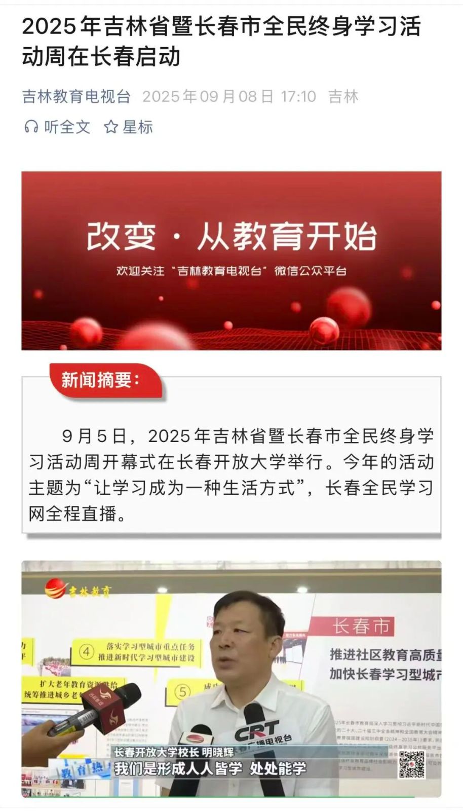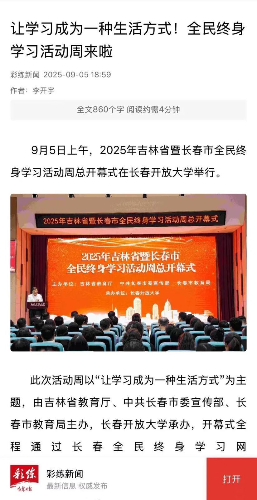 【媒体报道】聚焦2025年吉林省暨长春市全民终身学习活动周总开幕式,我校引领学习新风尚