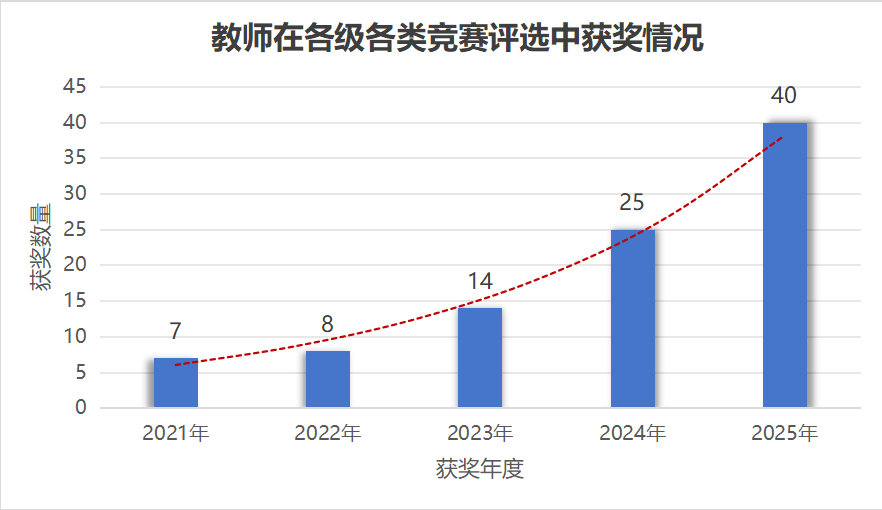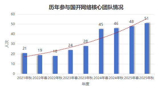 五年来,学校教师队伍实现整体跃升,在学术影响力、人才荣誉与教学创新方面成果显著。学术引领层面,3人任学术委员会委员、任学位评定委员会委员4人、受聘为专业教研中心组成员9人,入选国开网络核心团队51人次。人才荣誉方面,1人获评师德先进个人,1人获评优秀教师,1人获扶贫先进个人,3人获评首批优秀青年教师;在省级人才评选中,获评B类人才2人、C类人才1人、D类人才2人、E类人才12人。教学创新层面,我校教师在国开各级各类教学竞赛中获奖94项;我校教师参与建设的《社会保障学》获评教育部课程思政示范课,其团队被授予“教育部课程思政教学名师和团队”;自编教材《职业与人生》被评为国开精品在线课程,《现当代建筑赏析》获“开放大学教育信息化创新应用”案例二等奖。