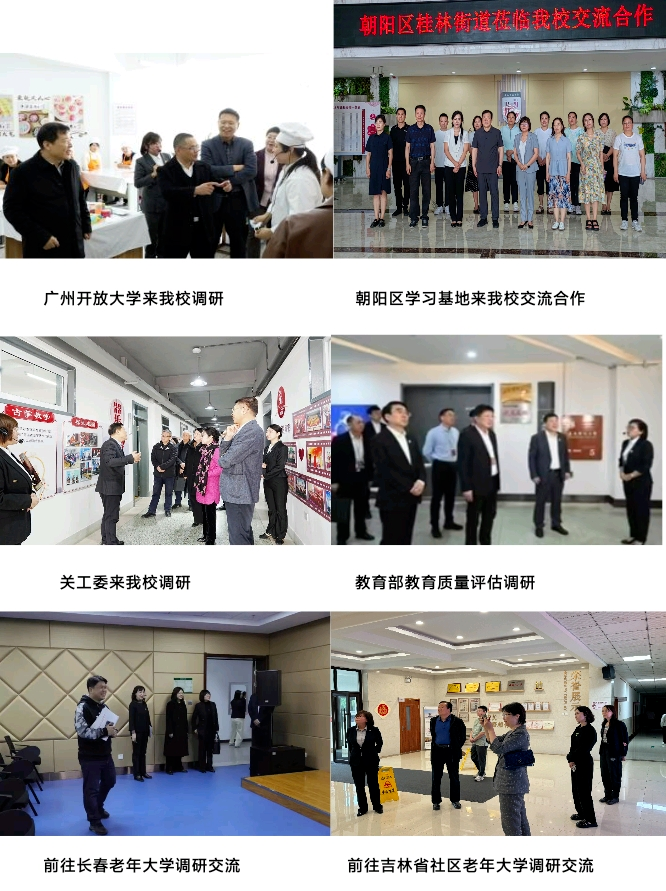 精心打造集“德、学、康、乐、为、家”于一体的老年教育文化阵地,成为集中展示“63366”实践模式和“六有”品牌内涵的实体窗口。阵地内设茶文化、烘焙、京剧、器乐等特色教室及“幸福里”休闲区,将服务温度与教学功能深度融合。该阵地已成为我校老年教育展示办学成果、接受社会各界领导参观检阅的重要窗口,“十四五”期间累计接待国家开放大学评估专家、兴安盟开放大学、锦州开放大学、吉林大学第一医院等各级调研与交流访问达30余次,阵地建设与办学成效获得广泛赞誉,是“服务有温度”的集中体现。