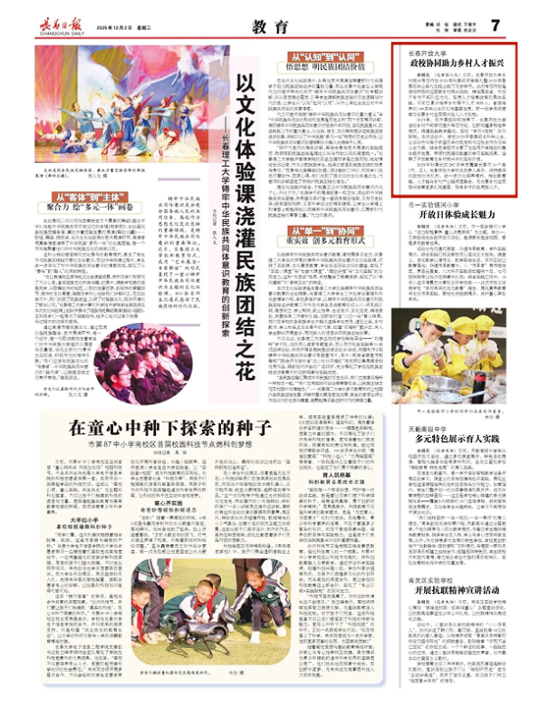 2025年12月2日,《长春日报》再次聚焦学校政校协同育人成效,深入展现学校与地方政府联动,通过学历提升、技能培训、项目孵化等方式,为乡村振兴注入智力支撑的创新路径。