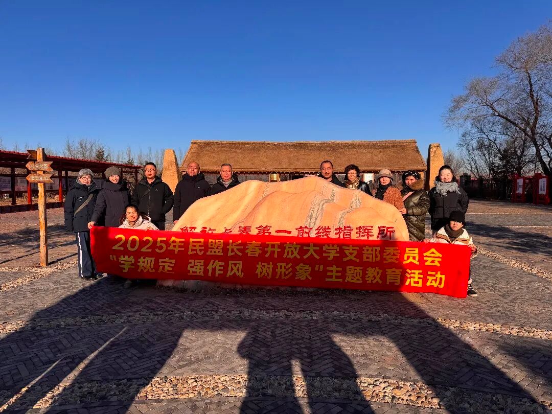 为贯彻上级统战工作精神,结合盟市委开展“学规定、强作风、树形象”的主题教育活动要求,2025年12月12日,民盟长春开放大学支部赴东北人民解放军第一前线指挥所旧址参观学习,党委宣传部(思政部)部长张海昶及部分同志一同参加。