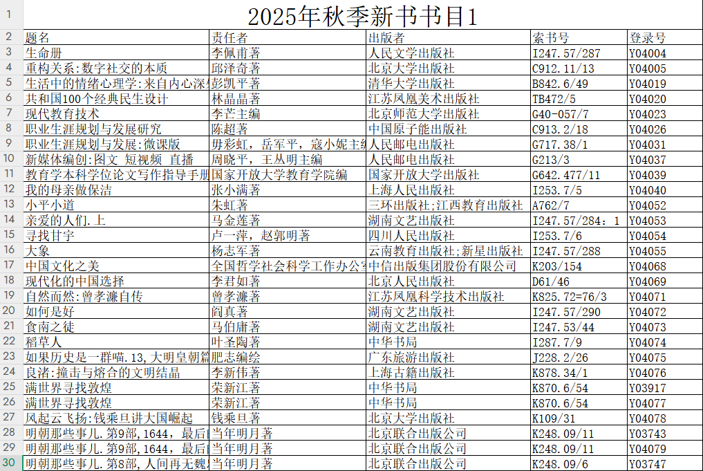 2025年秋季新书(第一期)已加工完毕,目正式上架、流通,欢迎老师到馆借阅!