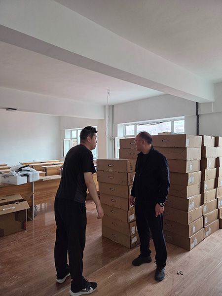 在即将竣工的信息化教室,宋刚校长详细查看了进展,并特别指出:要确保强弱电布线规范安全,桌椅摆放整齐、舒适适用,同时保持教室通风良好。检查过程中,他进一步强调,信息化教室的消防设施必须同步配备到位,切实将安全措施落实到一线,筑牢校园安全屏障。