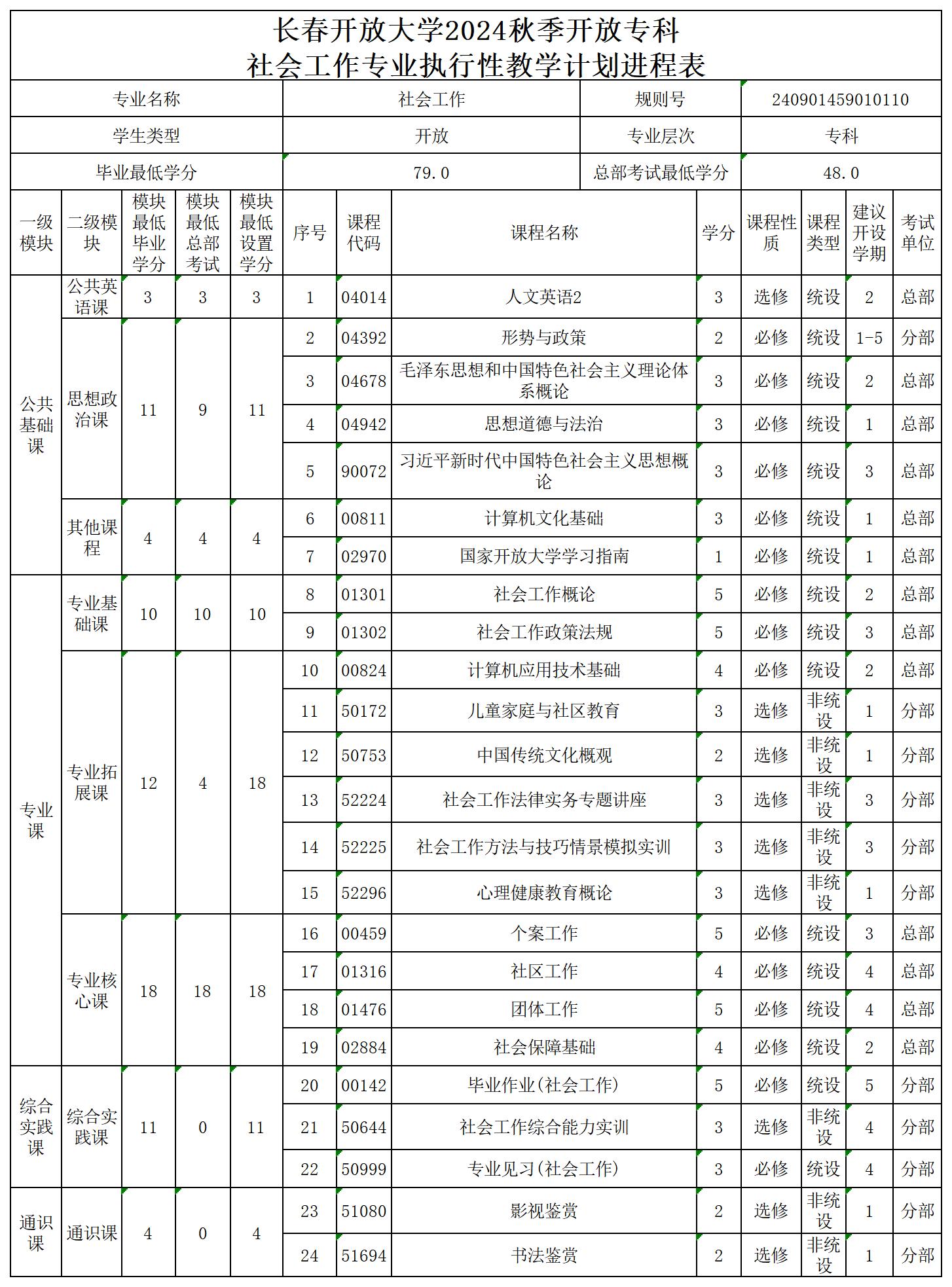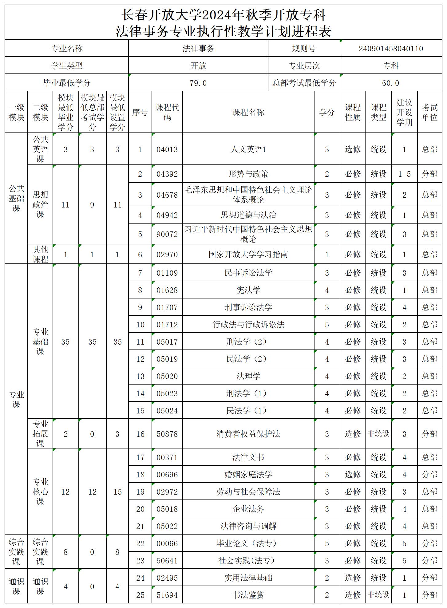 << 上一篇:2024秋季长春开放大学文法系本科专业执行性教学计划进程表