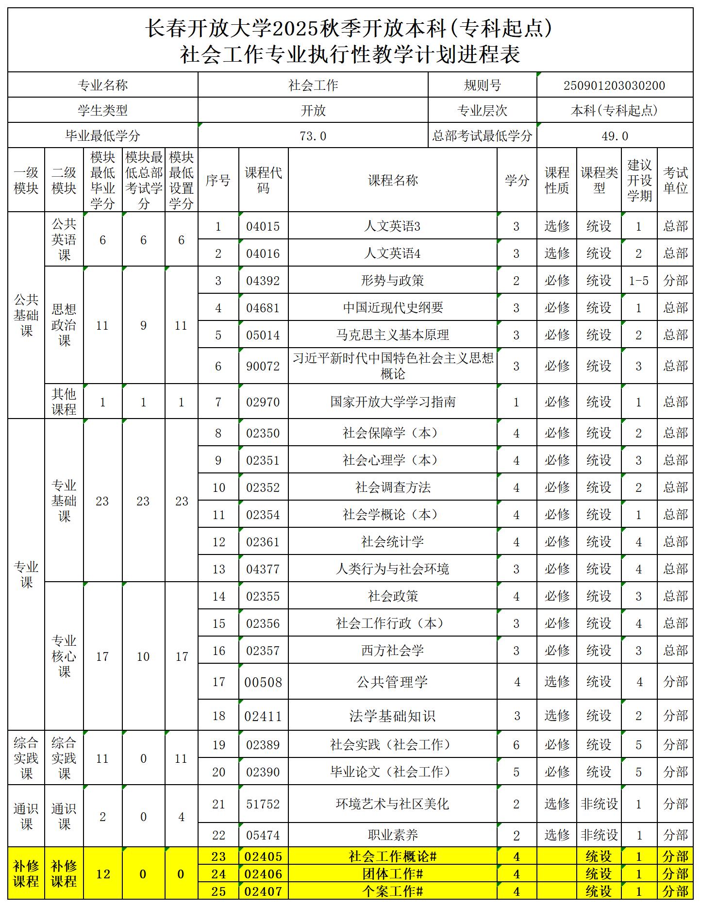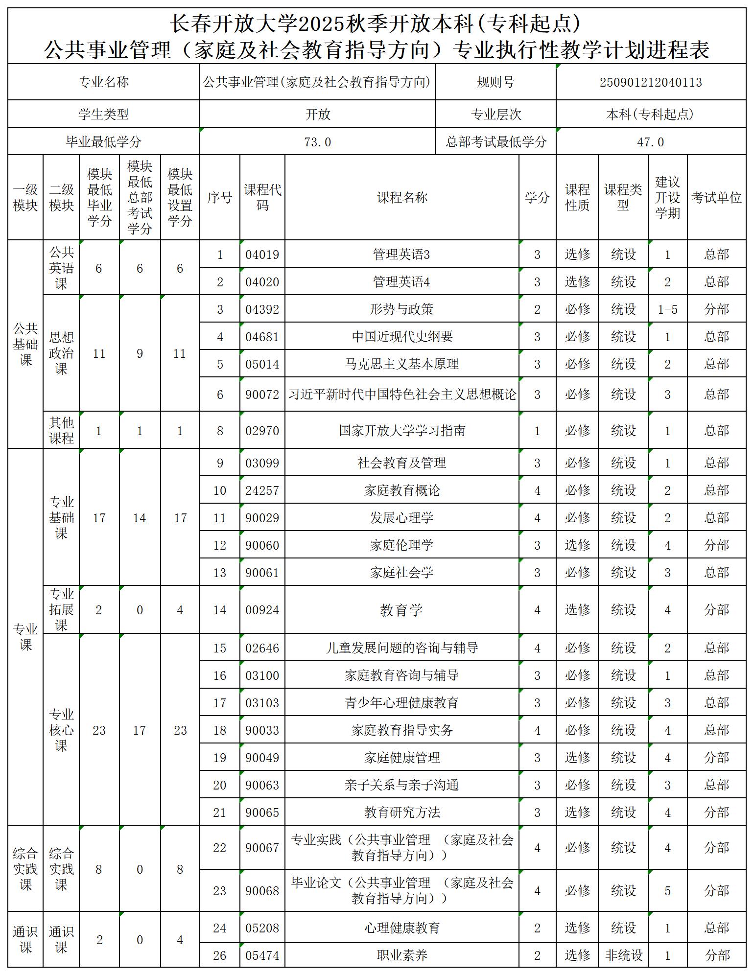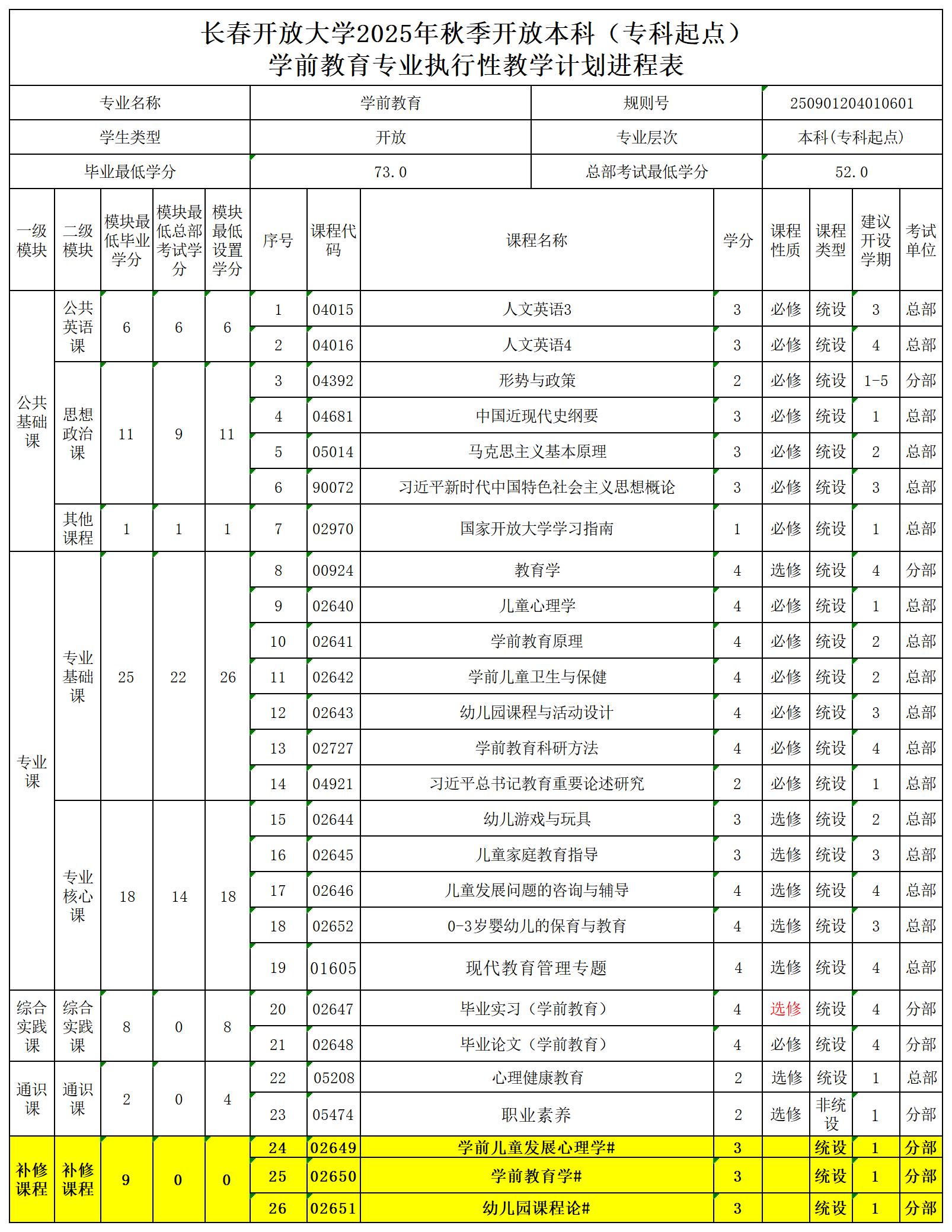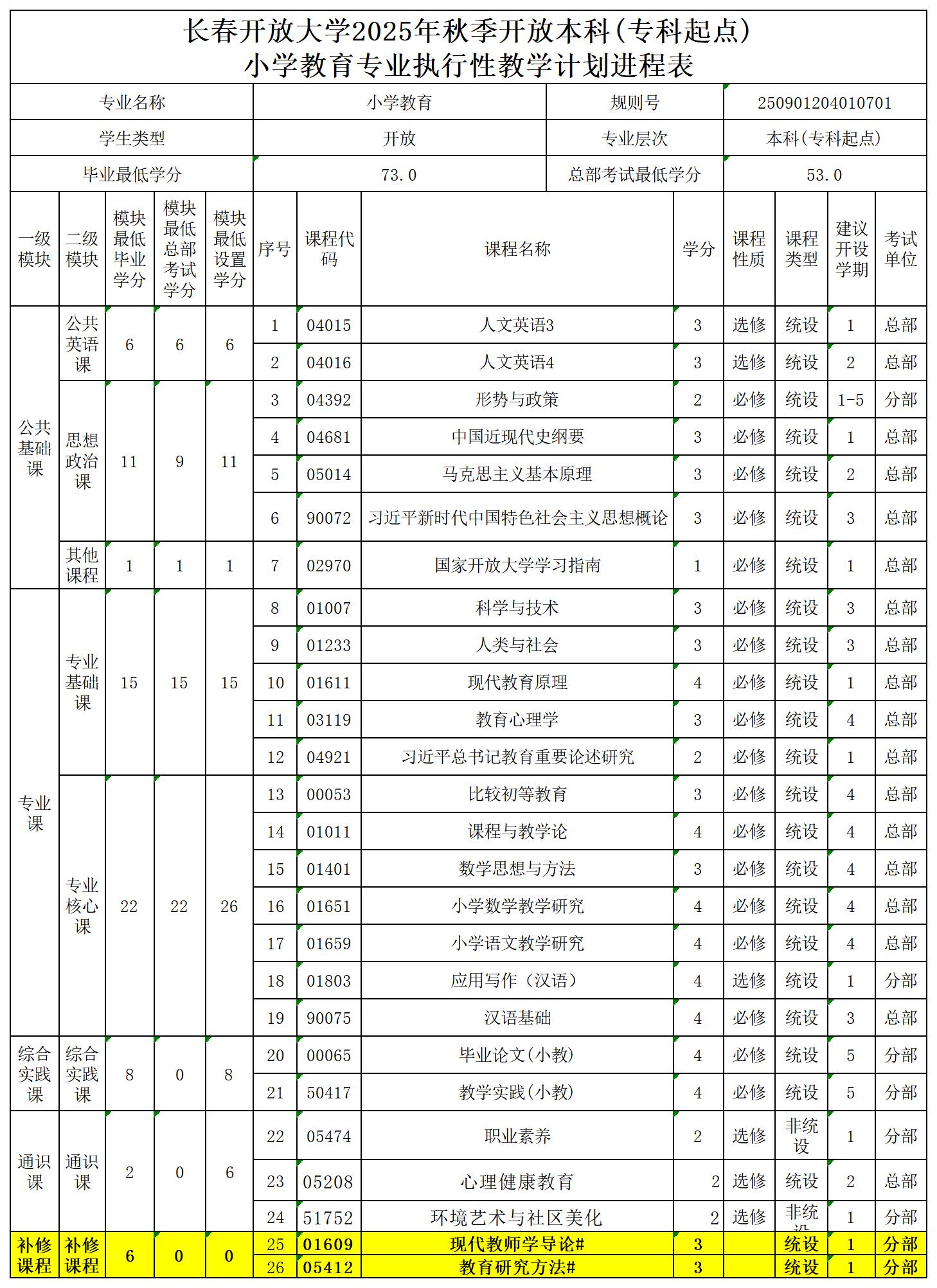 << 上一篇:2025春季长春开放大学文法系专科专业执行性教学计划进程表