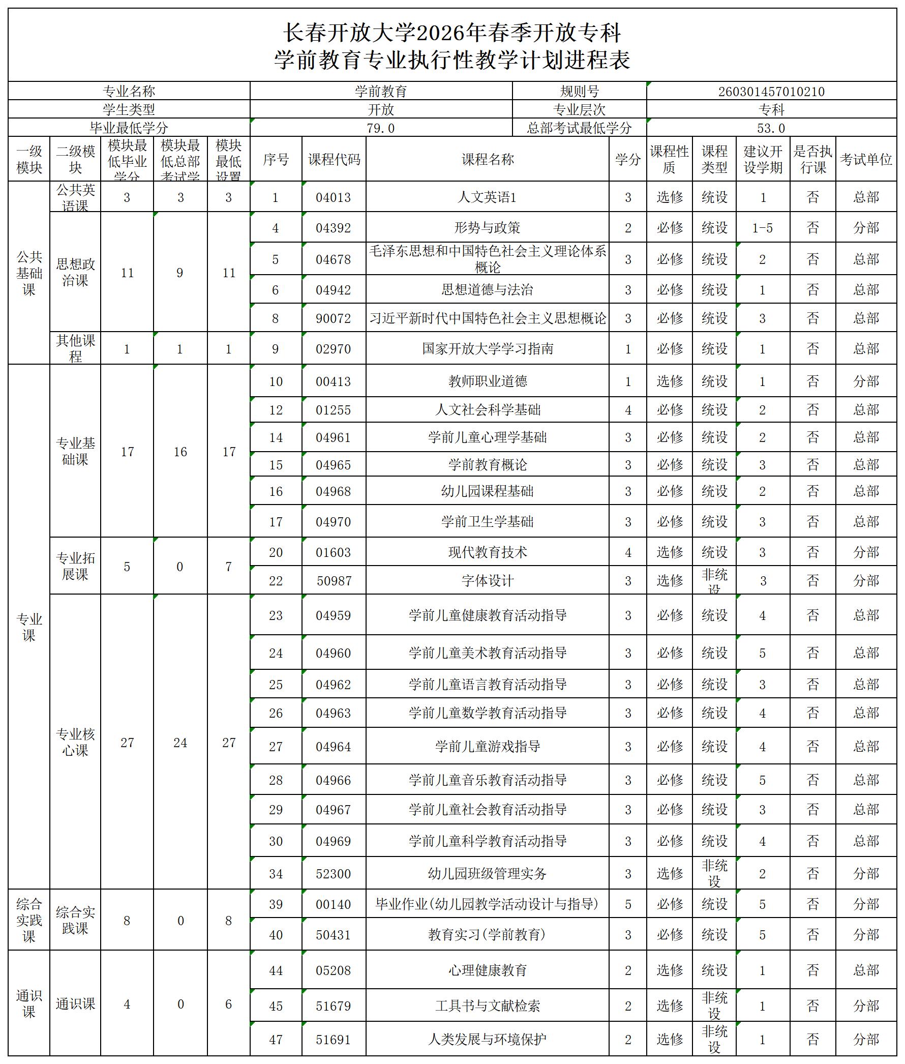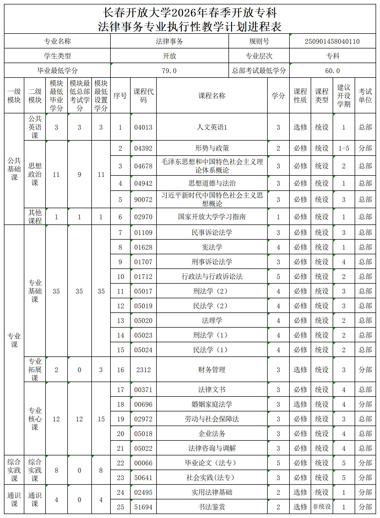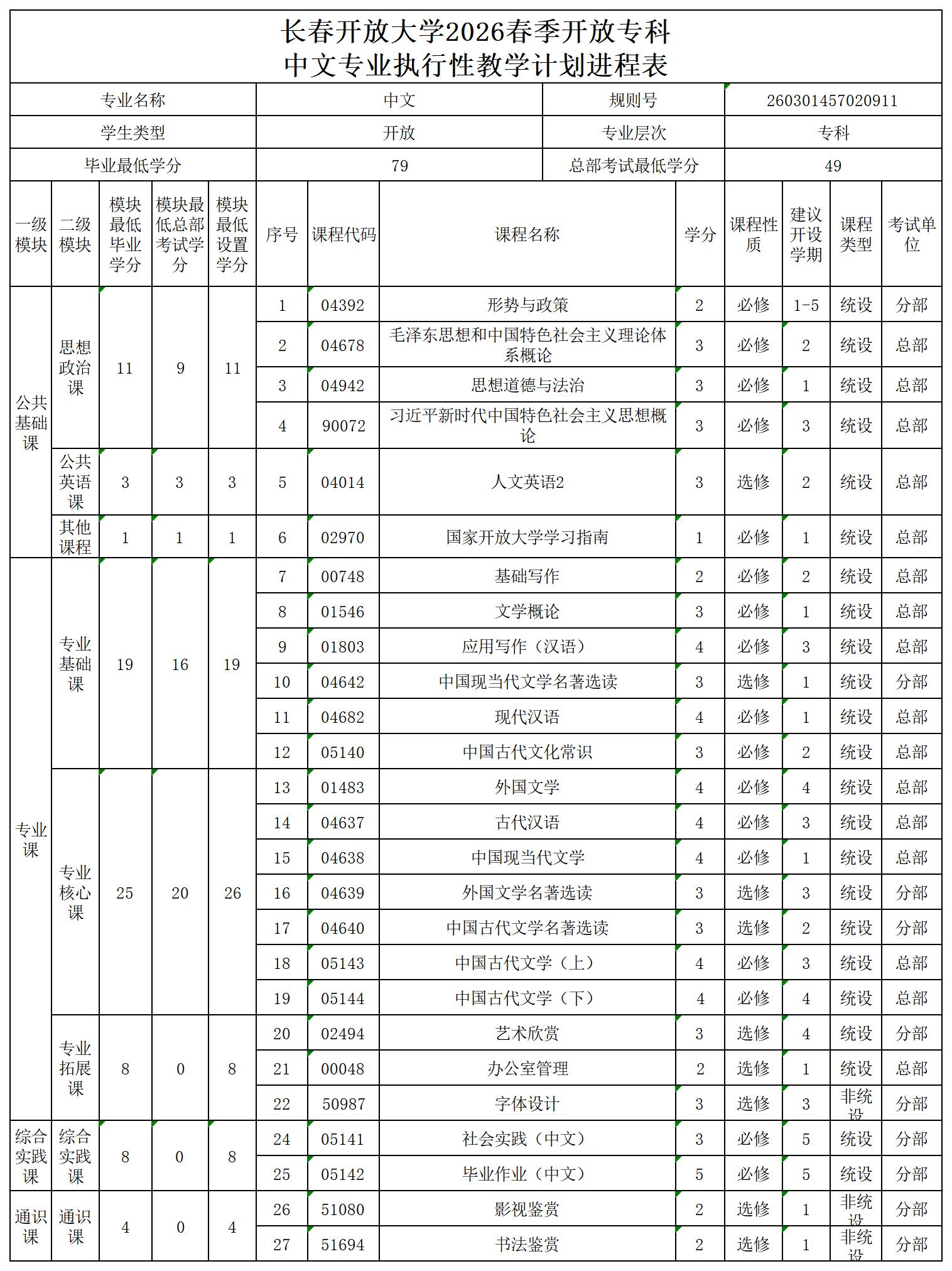 << 上一篇:2026春季长春开放大学文法系本科专业执行性教学计划进程表